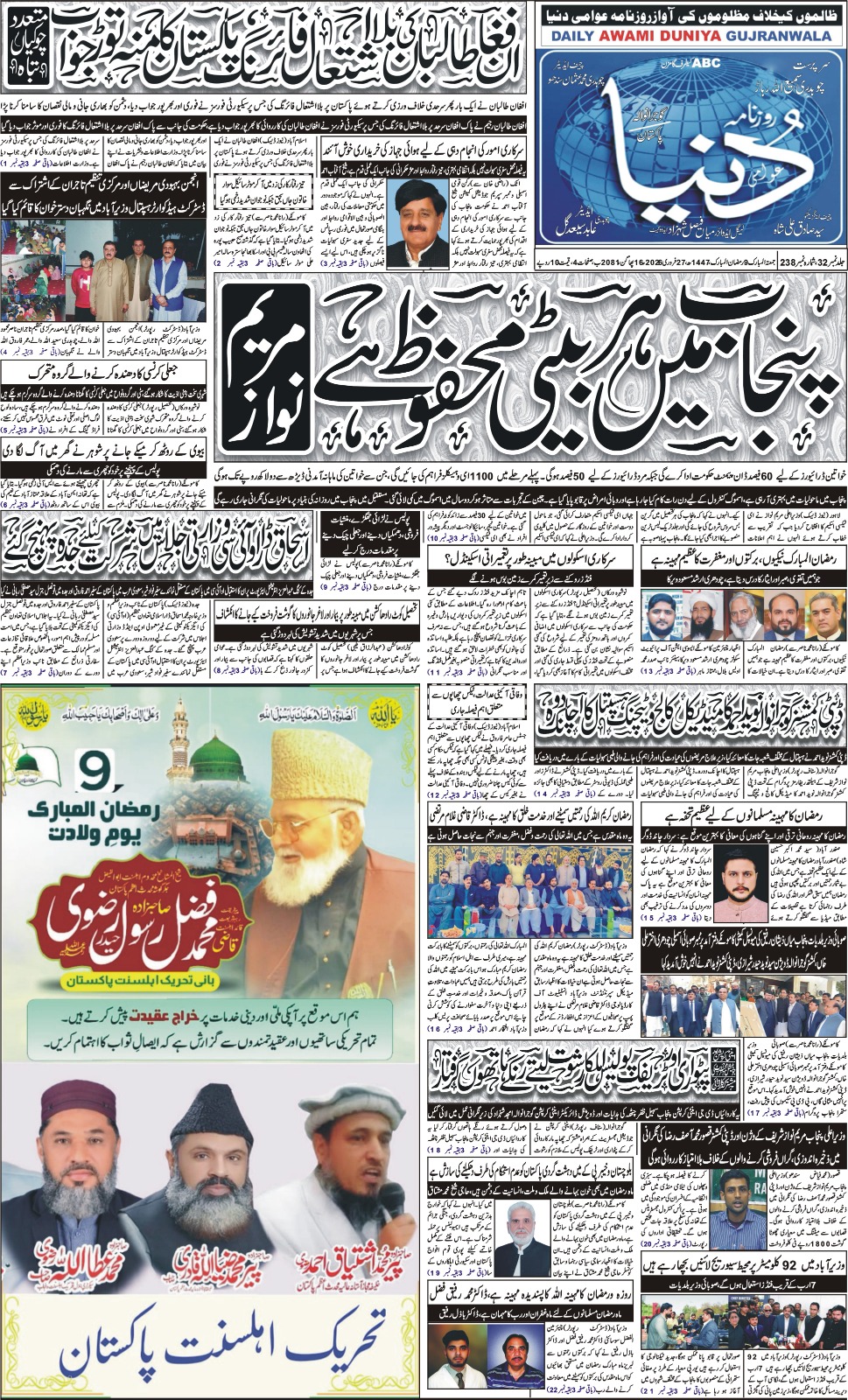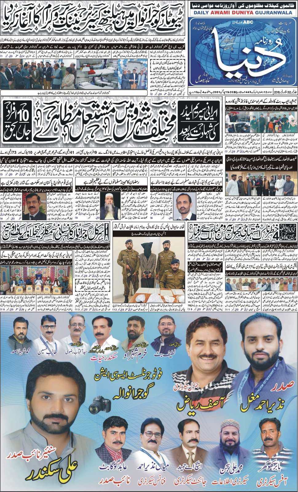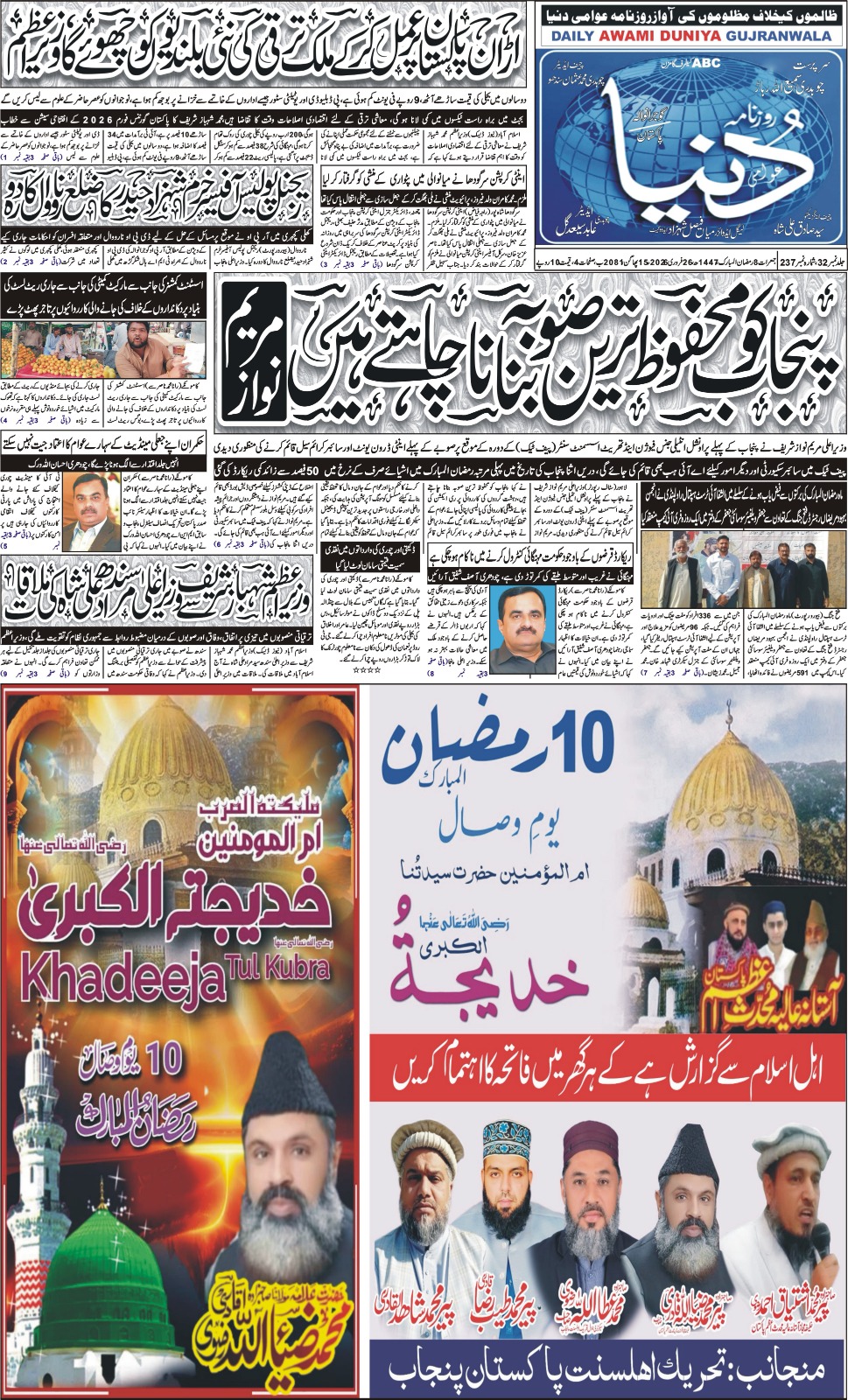 روزنامہ عوامی دنیا 26 فروری 2026 بروز جمعرات