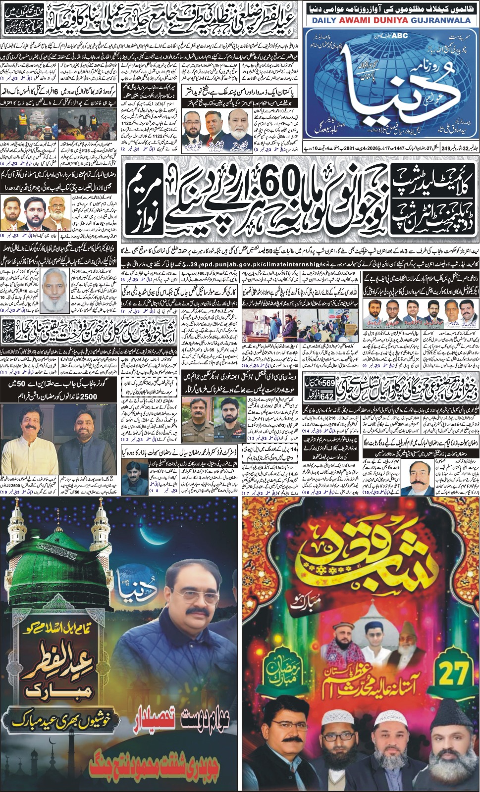 روزنامہ عوامی دنیا نیوز 17 مارچ 2026 بروز منگل