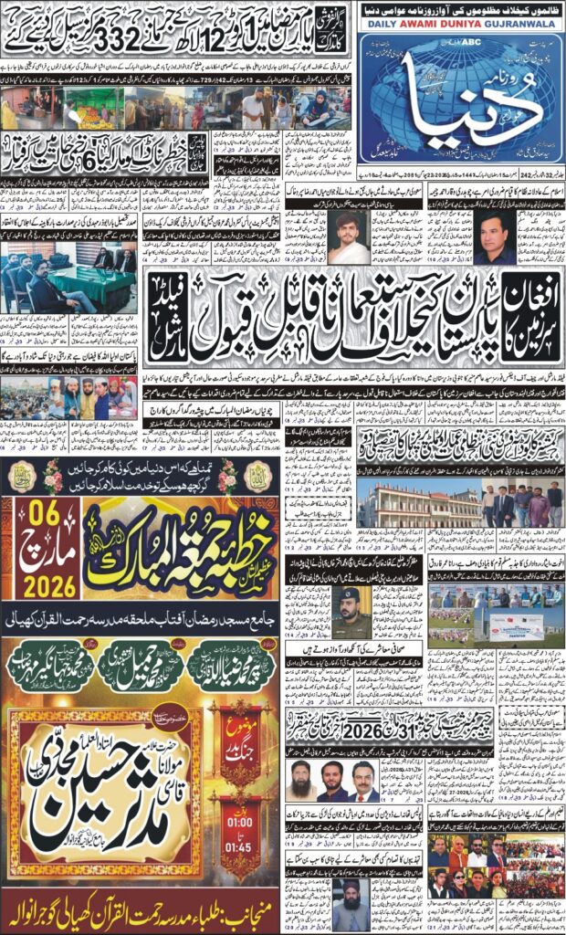 روزنامہ عوامی دنیا نیوز 5 مارچ 2026 بروز جمعرات