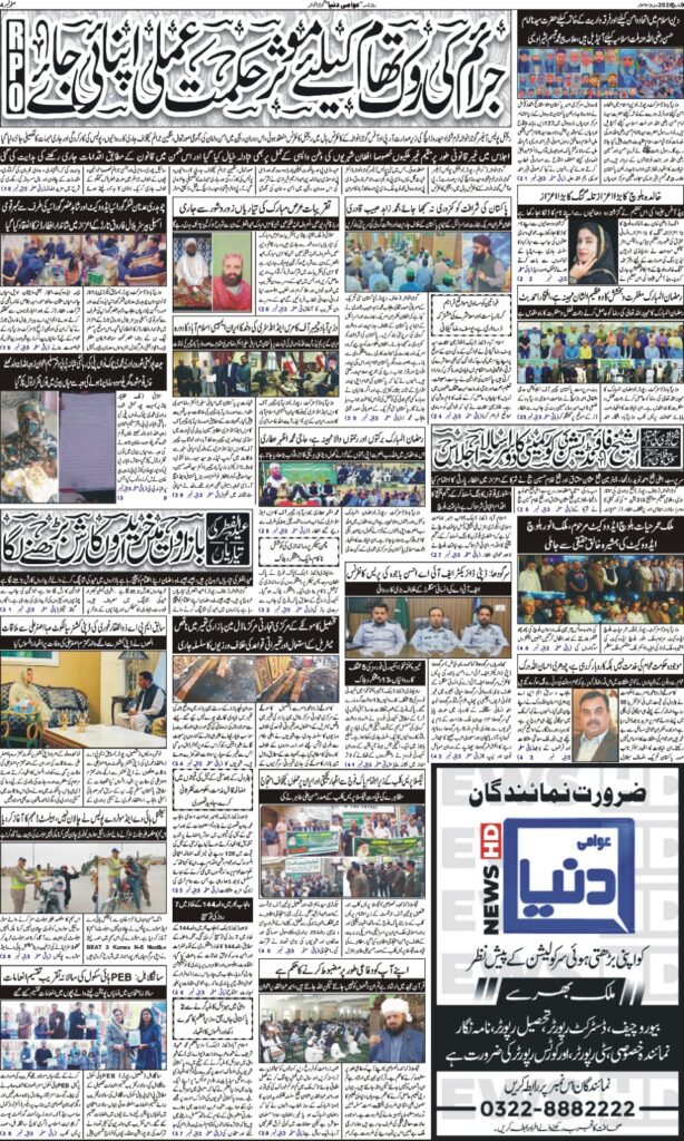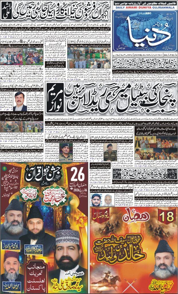 روزنامہ عوامی دنیا نیوز 9 مارچ 2026 بروز سوموار